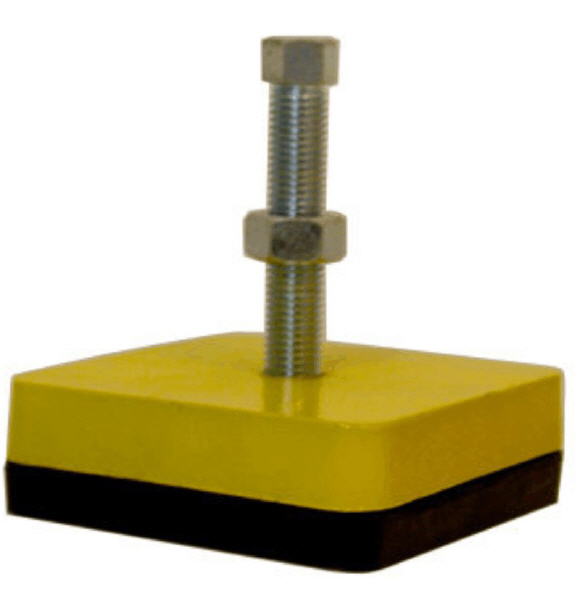 H.M. Maschinenschuhe können in der Höhe beliebig justiert werden und gestatten die plane Ausrichtung Ihrer Maschinen auch auf unebenem Grund. Das Gummi der Polsterung bewahrt seine Federungs- und Dämpfungseigenschaften unabhängig von der Intensität des absorbierten Schalls über lange Zeiträume hinweg.