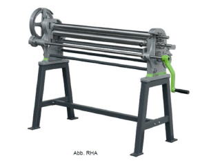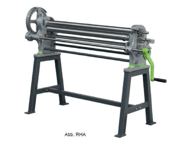 Die Rundbiegemaschine Typ RHA ist ein manuelles Tischmodell mit rundgeschliffenen Walzen, die asymmetrisch montiert sind. Die Seitenständer sind aus eloxiertem, massivem Aluminium. Zum Runden von Werkstücken mit Drahteinlagen sind die Unter- und Hinterwalzen bei allen Modellen mit einer Arbeitslänge ab 675 mm mit vier verschiedenen Nuten ausgerüstet. Optional ist ein leichtes Untergestell aus Stahlrohren erhältlich.